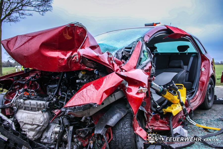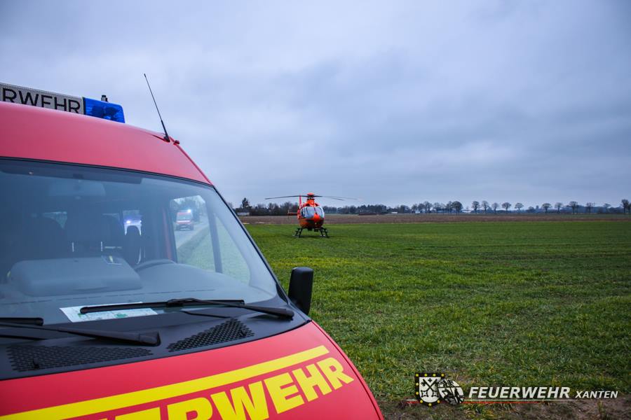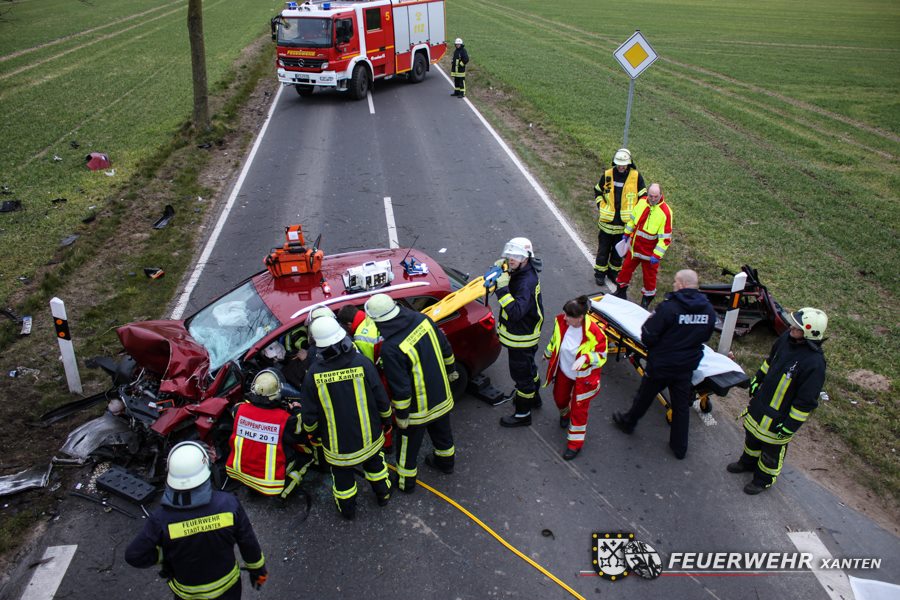 Durch die Wucht des Aufpralls wurde der Fahrer in seinem Fahrzeug eingeklemmt. Die Löschzüge Xanten-Nord und Xanten-Mitte, sowie der Rettungsdienst der Stadt Xanten konnten den Fahrer aus seiner Zwangslage befreien. Ein Rettungshubschrauber verbrachte den Patienten in eine entferntliegende Unfallklinik. Die Feuerwehr klemmte anschließend die Fahrzeugbatterie ab und nahm auslaufende Betriebsmittel auf.